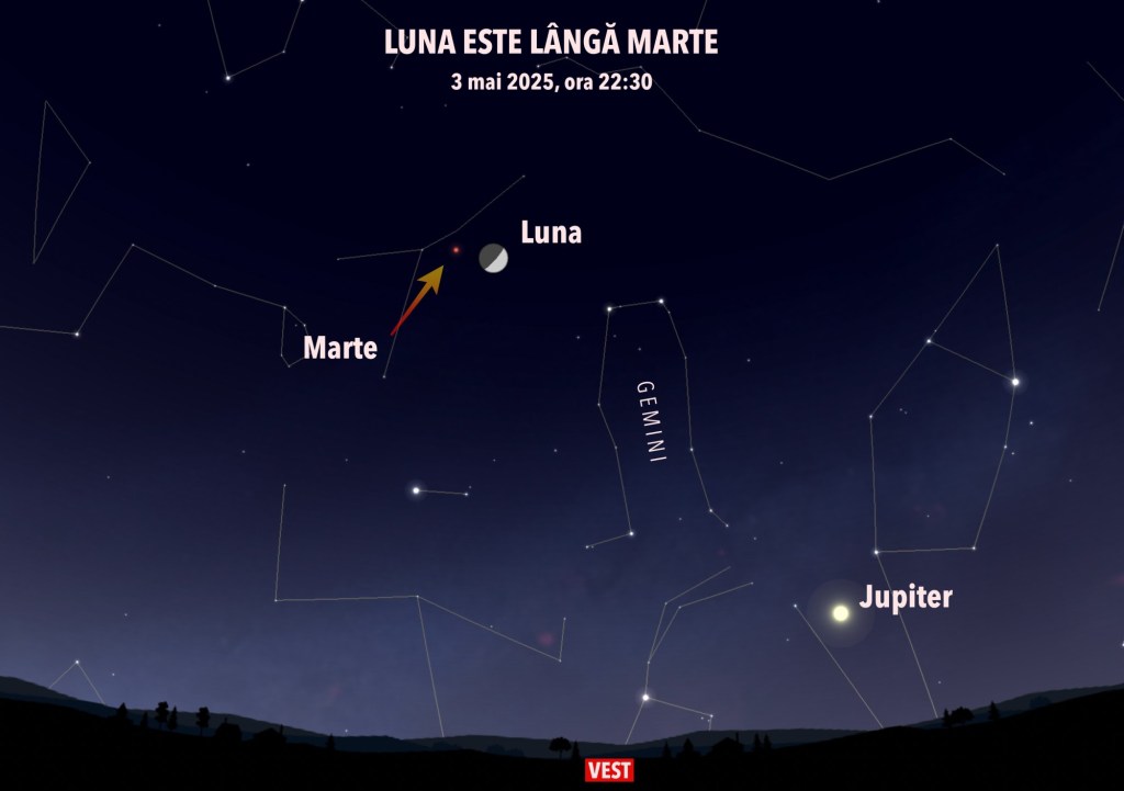 May 3, 2025 sonkab Luna lângă Marte – 3 mai 2025 Nu uitați că urmează o zi foarte importantă pentru noi toți: pe 3 mai, seara, Luna se va afla pe cer lângă planeta Marte! Share this: Click to email a link to a friend (Opens in new window) Email Click to share on Facebook (Opens in new window) Facebook Click to share on X (Opens in new window) X Like Loading... Related