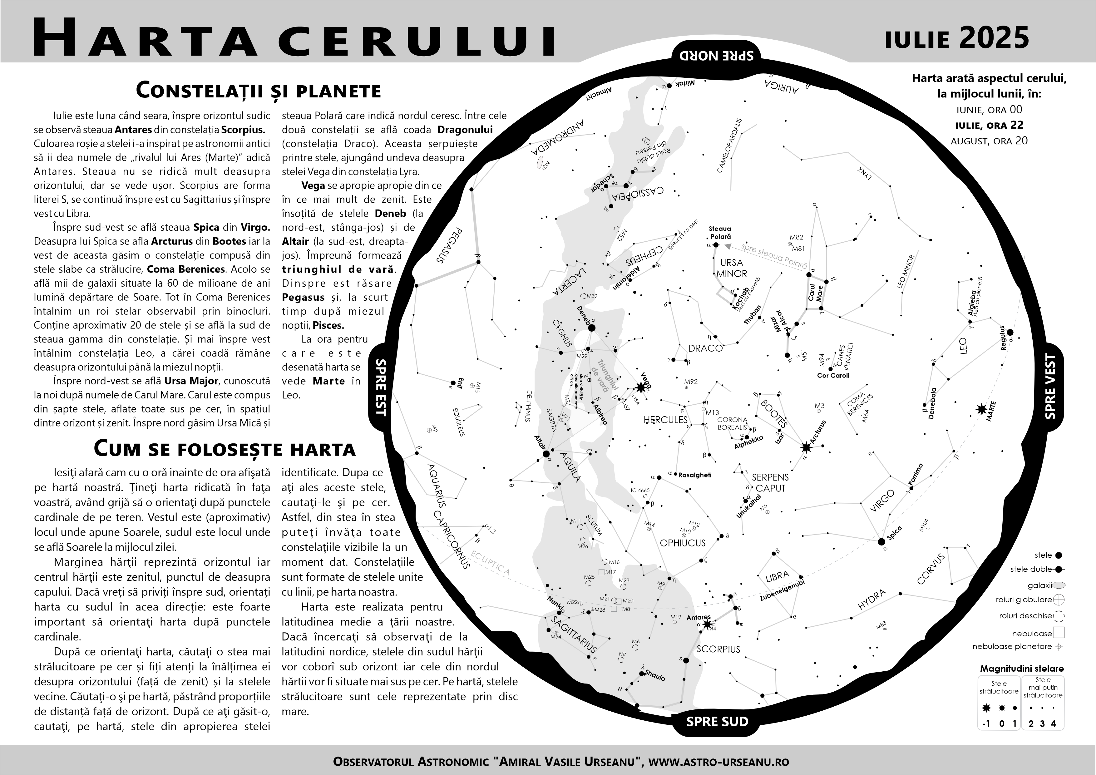 Iulie este luna când seara, înspre orizontul sudic se observă steaua Antares din constelația Scorpius.