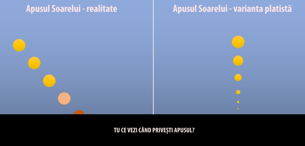 Dacă planeta ar fi plată, Soarele ar sta mereu deasupra ei, neavând unde să se ascundă, iar răsăritul și apusul ar fi fenomene imposibile.