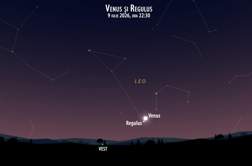 - de steaua Regulus, cea mai strălucitoare din constelația Leul, între 8 și 11 iulie; se văd seara, la apus, în jurul orei 21:30;