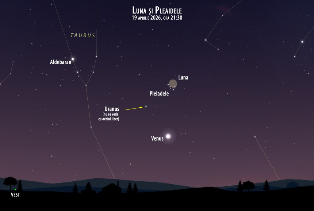 Luna se va vedea înspre vest, va fi o seceră subțire, iar stelele din Pleiade sunt numeroase. Foarte frumos.