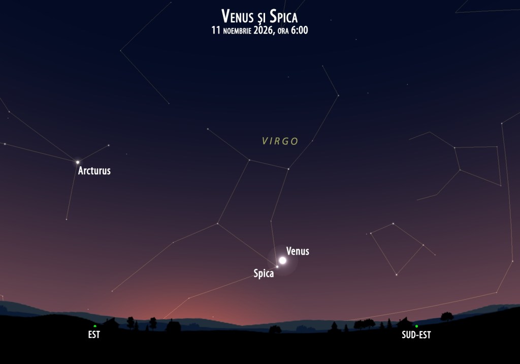 Pe tot parcursul lunii noiembrie, planeta Venus se va afla lângă Spica, cea mai strălucitoare stea din constelația Virgo.