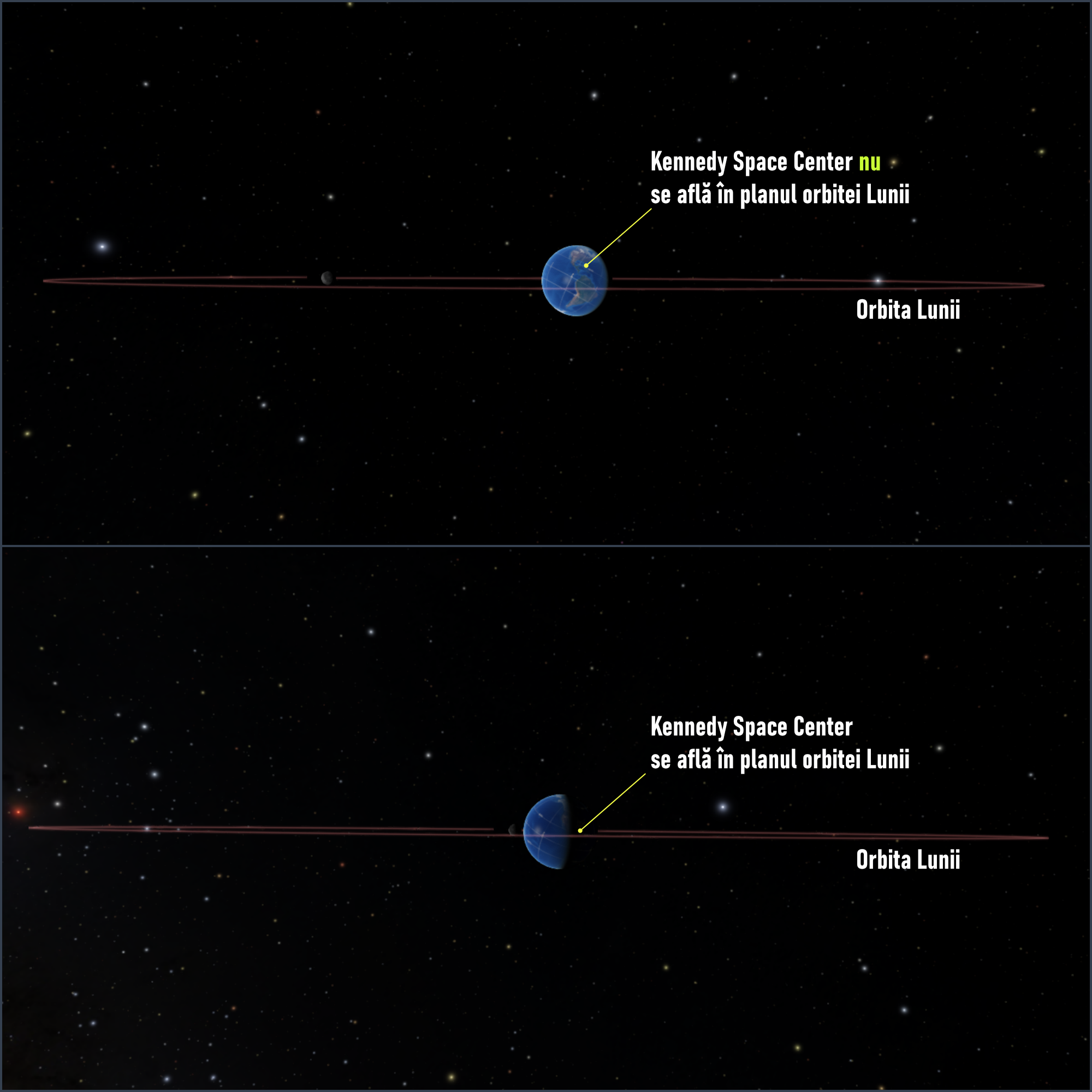 În primul rând, nu se poate pleca de pe Pământ la Lună la orice oră vrei pentru că orbita Lunii este înclinată față de cea a planetei noastre.