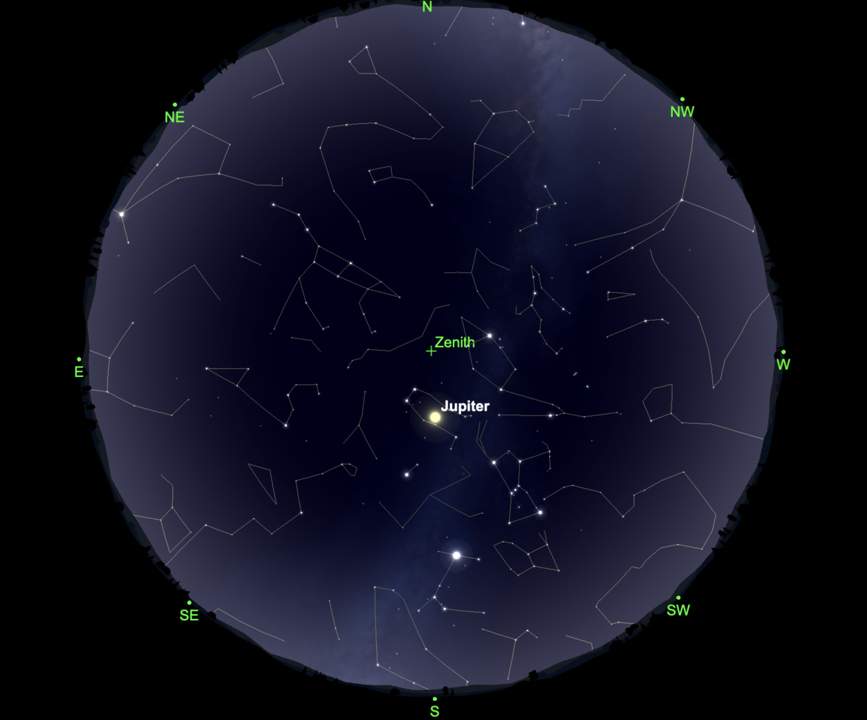 Jupiter trece la fiecare 12 ani prin această constelație, drept pentru care se va vedea sus pe cer, nu deasupra capului, dar destul de sus ca să te doară gâtul când te uiți.