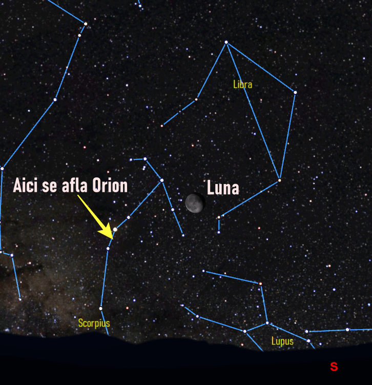 Pe cer Luna se afla foarte aproape de Orion, drept pentru care lumina ei intra în telescop și strica imaginea. Chiar și așa, capsula se vede destul de bine.