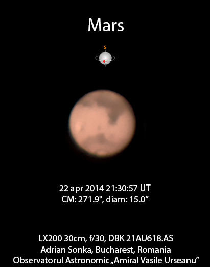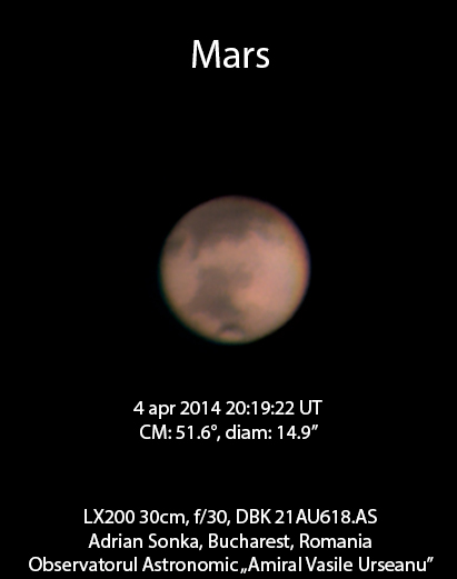 În perioada ianuarie-iunie 2014 de pe terasa Observatorului, prin telescopul MEADE de 30 cm diametru, am luat imagini cu planeta Marte.